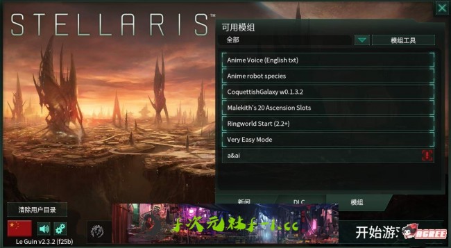 MOD使用方法:先解压MOD,然后在游戏根目录里新建一个mod文件夹,再把解压出来的文件复制进去,打开游戏启动器(stellaris),点国旗选择中文,然后再模组里点选你要打的MOD,再点击PLAY就可以了!
