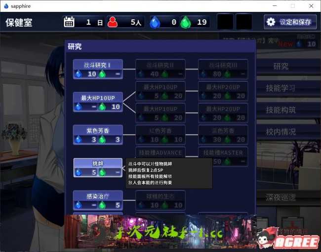 在每天的深夜,需要控制女主,根据怪物们的特性,进行讨伐/防疫/治疗等工作